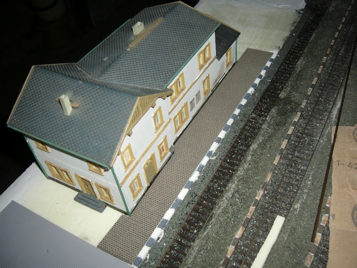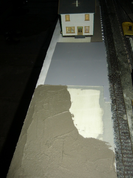 dodělávám staničku,začal jsem pokládat povrchy ve stanici.Ke skladu je ještě cesta ze stavebního lepidla,vyzkoušeno na předchozích modulech,ta přechází v parkoviště ze zámkové dlažby.