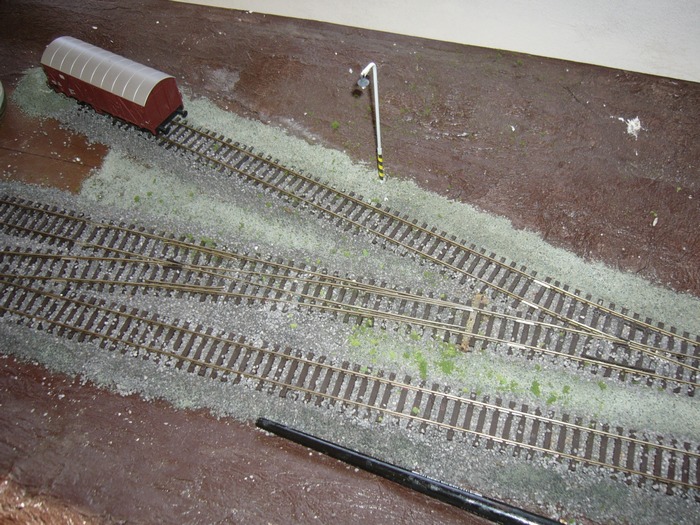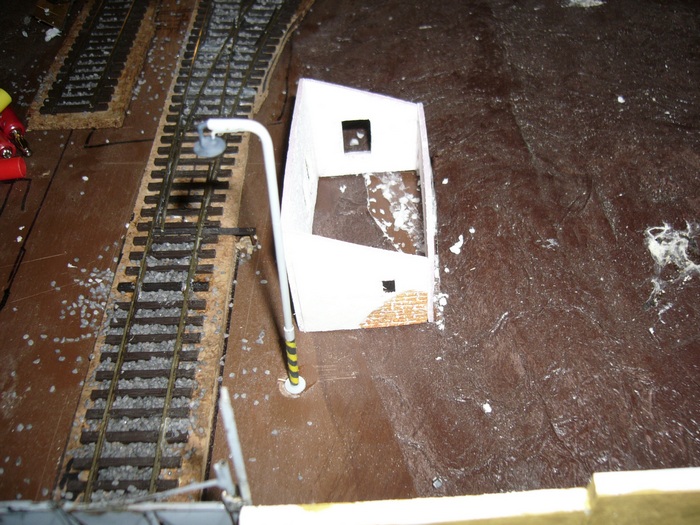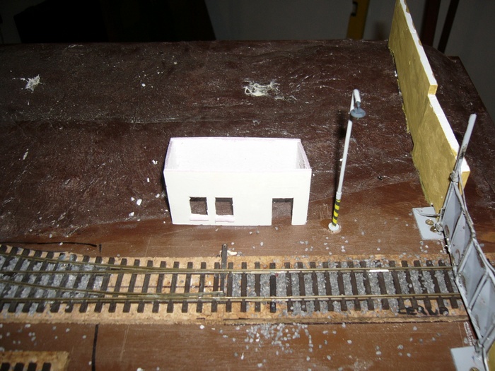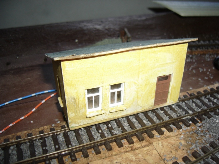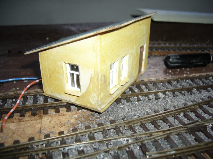 teď už jenom zbývá zapojit dráty od ledky a budovu trochu ošuntět aby zapadla
