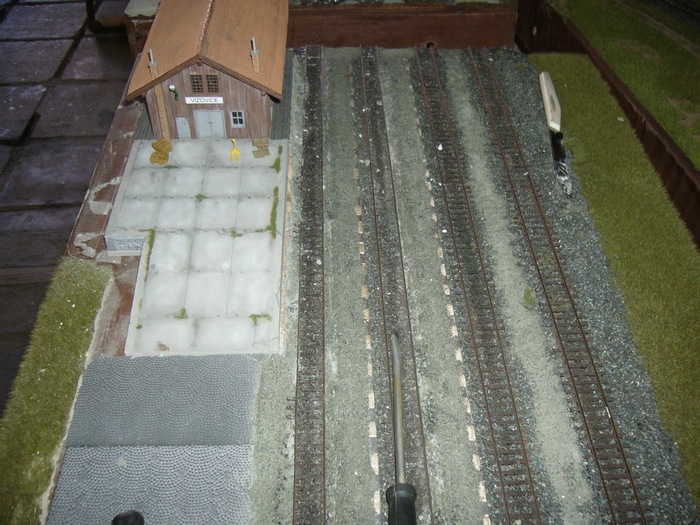 no a když už jsem byl v tom předělávání tak jsem změnil i nástupiště u nádražní budoy.Prodloužený perón bude určitě líp vypadat