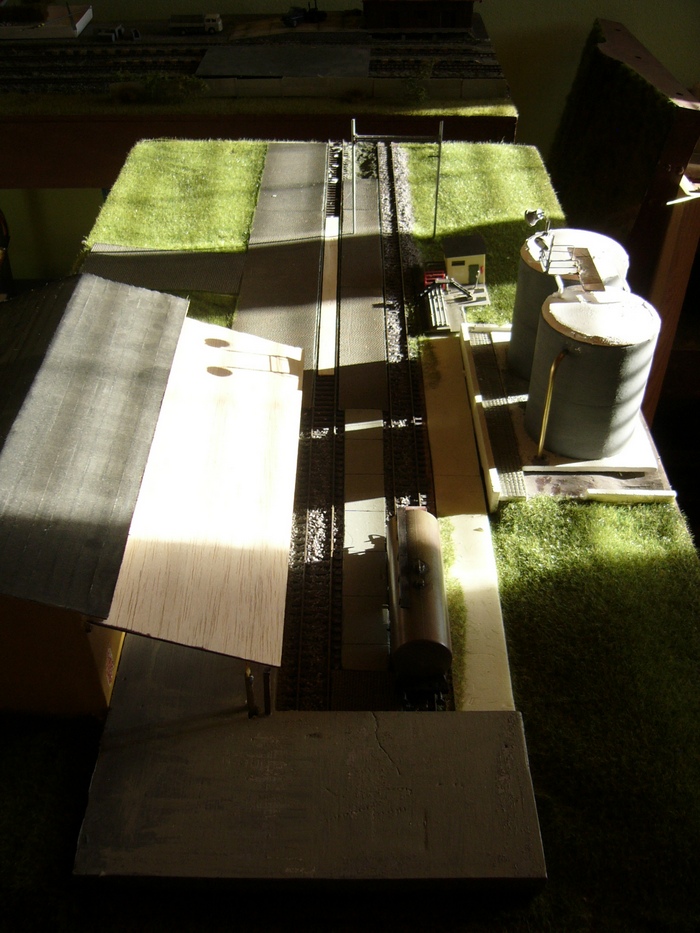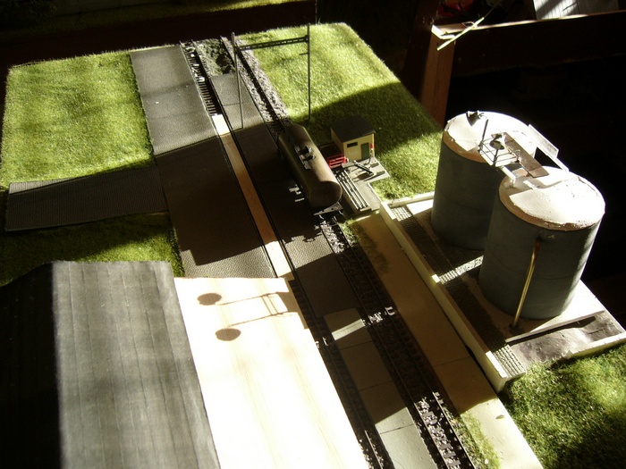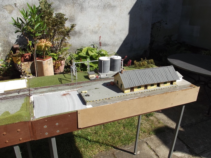 Rozhodl jsem se ji celou přebudovat.Kolejový plán zůstává zachovaný,dodělal jsem jednu budovu,jejíž hrubou stavbu mě věnoval kolega Broněk,přesunul jednu budovu skladu a použil další sklad ze zrušeného areálu skladiště.Musím říct,že větší zástavba vlečky se mě líbí.Ještě čekám na výlisek dlažby a na střešní krytinu,tím bude stavební část asi ukončena.Jako další možné pokračování se nabízí ještě vykládka vozů E na kusé koleji,tam je ještě trochu místa.Další pokračování stavby bude oba dva moduly obložit sololitem,zvedám hrany kvůli lepší ochraně proti dětským prstíkům.Lépe taky bude vypadat statická tráva,nebude tolik přepadávat přes hranu.