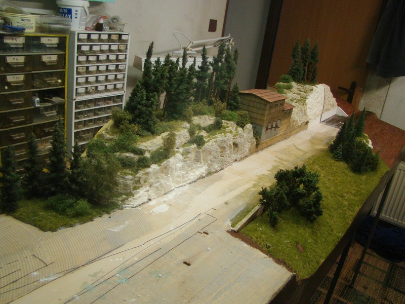 Zřejmě z fotky není moc patrno, jak stanice vypadala před nástupem „traťovky“, ale našemu klubu původní kolejový plán nevyhovoval. Stanice měla jen dvě průjezdné koleje a zaústění vlečky lomu přes angličana nebylo šťastné. Takže jsem se rozhodl, že všechny koleje půjdou dolů a vše bude jinak.