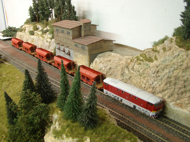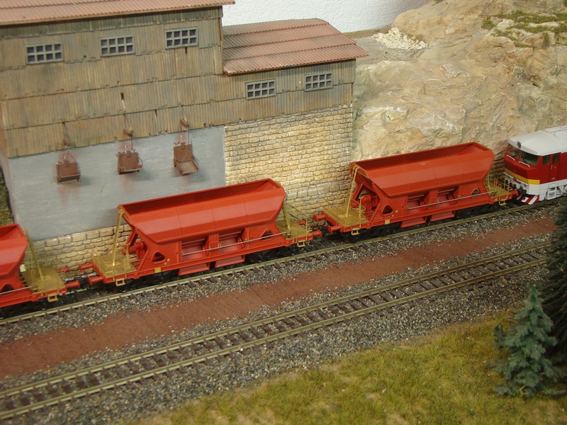 Nakonec ještě fotky s vagonky pod násypkami lomu které mladý modelář stavěl.