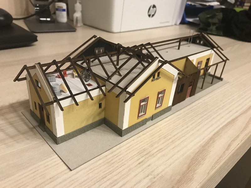 Jelikož skladiště mělo nehezkou rampu, tak jsem ji vylepšil. Na hrany jsem použil styrodur, na pojízdné plochy jsem použil kamennou dlažbu od faller https://www.faller.de/de/de/Produkte/Spurweiten/H0-Programm/Landschaftsbauten/Arkaden-Dekorplatten/Dekorplatte-R%C3%B6misches-Kopfsteinpflaster-sid10373.html cena příznivá cca 150Kč za dvě plotny 370x195mm.
