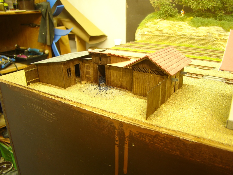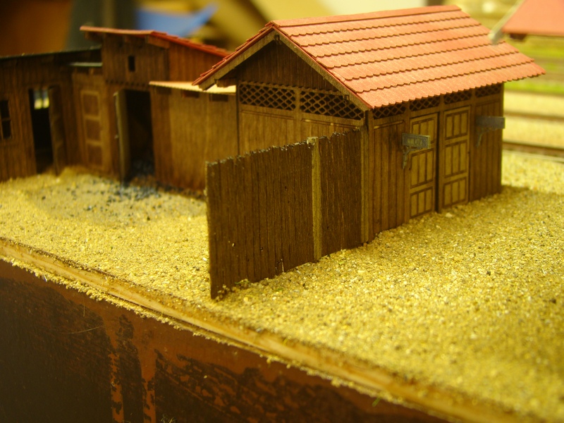 Záchodky se šopkama jsem před nalepením na modul doplnil plotkem a brankou. Pak šopky nalepil akrotmelem a kolem opět zasypal hlínou a fixoval sportakrylem. No je to zkrátka pořád stejná písnička. Do kurníku (účel budovy jsem se dozvěděl až později) jsem nasypal uhlí. No co, tak kurník nebude. Doba se mění.